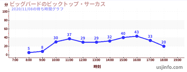 • ビッグバードのビックトップ・サーカス$B$N(B2020年11月08日の待ち時間