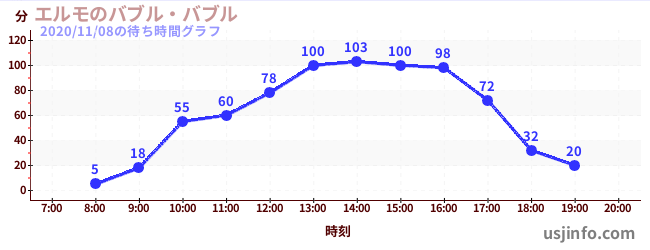 • エルモのバブル・バブル$B$N(B2020年11月08日の待ち時間