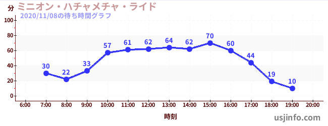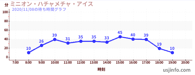 • ミニオン・ハチャメチャ・ライド$B$N(B2020年11月08日の待ち時間