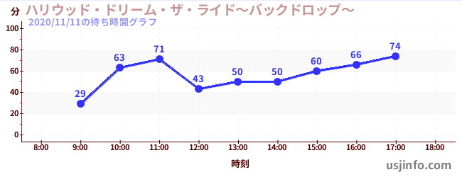 • ハリウッド・ドリーム・ザ・ライド〜バックドロップ〜$B$N(B2020年11月11日の待ち時間