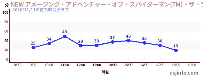 • NEW アメージング・アドベンチャー・オブ・スパイダーマン(TM)・ザ・ライド 4K3D$B$N(B2020年11月11日の待ち時間