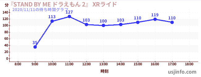• 『STAND BY ME ドラえもん 2』 XRライド$B$N(B2020年11月11日の待ち時間
