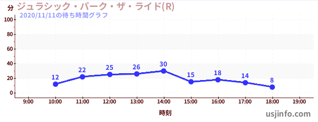 • ジュラシック・パーク・ザ・ライド(R)$B$N(B2020年11月11日の待ち時間