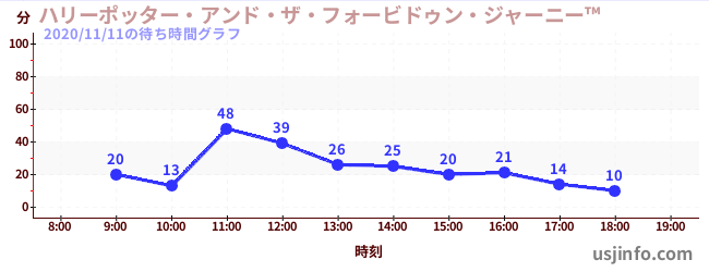 • ハリーポッター・アンド・ザ・フォービドゥン・ジャーニー™$B$N(B2020年11月11日の待ち時間