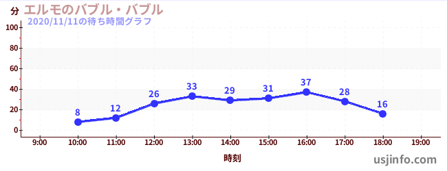 • エルモのバブル・バブル$B$N(B2020年11月11日の待ち時間