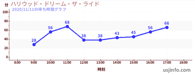 • ハリウッド・ドリーム・ザ・ライド$B$N(B2020年11月11日の待ち時間