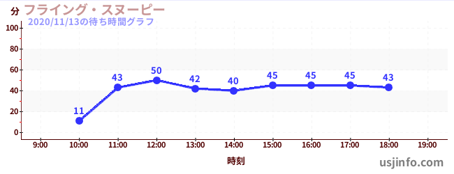 • フライング・スヌーピー$B$N(B2020年11月13日の待ち時間