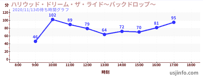 • ハリウッド・ドリーム・ザ・ライド〜バックドロップ〜$B$N(B2020年11月13日の待ち時間