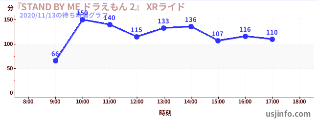• 『STAND BY ME ドラえもん 2』 XRライド$B$N(B2020年11月13日の待ち時間