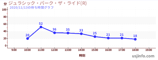 • ジュラシック・パーク・ザ・ライド(R)$B$N(B2020年11月13日の待ち時間