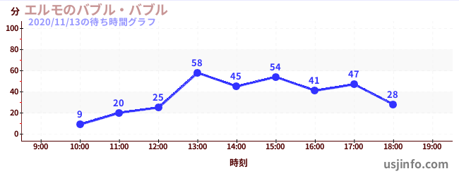 • エルモのバブル・バブル$B$N(B2020年11月13日の待ち時間