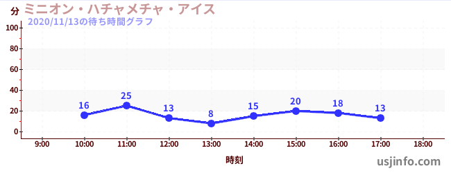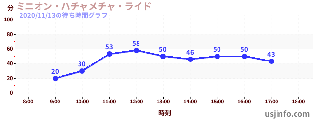 • ミニオン・ハチャメチャ・ライド$B$N(B2020年11月13日の待ち時間