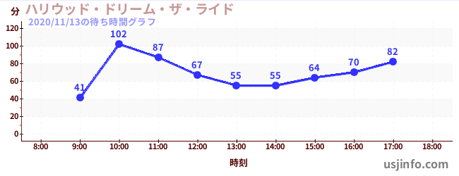 • ハリウッド・ドリーム・ザ・ライド$B$N(B2020年11月13日の待ち時間