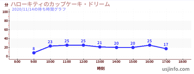 • ハローキティのカップケーキ・ドリーム$B$N(B2020年11月14日の待ち時間