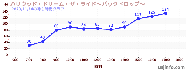 • ハリウッド・ドリーム・ザ・ライド〜バックドロップ〜$B$N(B2020年11月14日の待ち時間