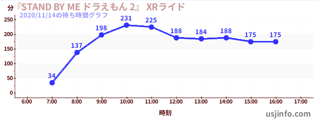 • 『STAND BY ME ドラえもん 2』 XRライド$B$N(B2020年11月14日の待ち時間