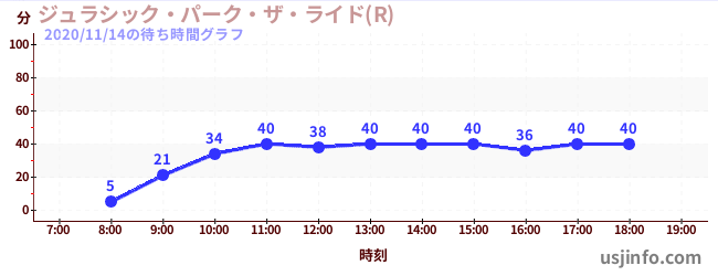 • ジュラシック・パーク・ザ・ライド(R)$B$N(B2020年11月14日の待ち時間