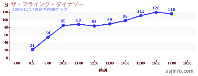 • ザ・フライング・ダイナソー$B$N(B2020年11月14日の待ち時間