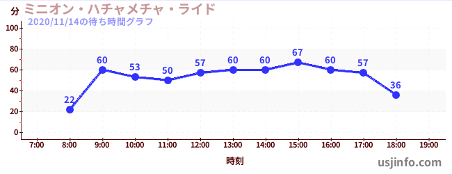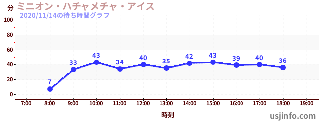 • ミニオン・ハチャメチャ・ライド$B$N(B2020年11月14日の待ち時間