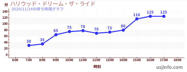 • ハリウッド・ドリーム・ザ・ライド$B$N(B2020年11月14日の待ち時間