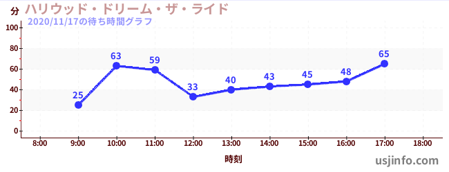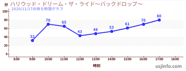 • ハリウッド・ドリーム・ザ・ライド〜バックドロップ〜$B$N(B2020年11月17日の待ち時間