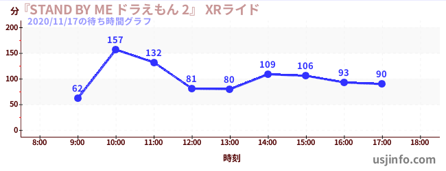 • 『STAND BY ME ドラえもん 2』 XRライド$B$N(B2020年11月17日の待ち時間