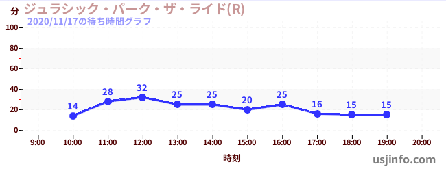 • ジュラシック・パーク・ザ・ライド(R)$B$N(B2020年11月17日の待ち時間