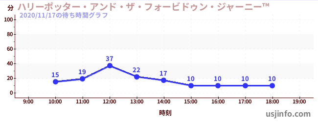 • ハリーポッター・アンド・ザ・フォービドゥン・ジャーニー™$B$N(B2020年11月17日の待ち時間