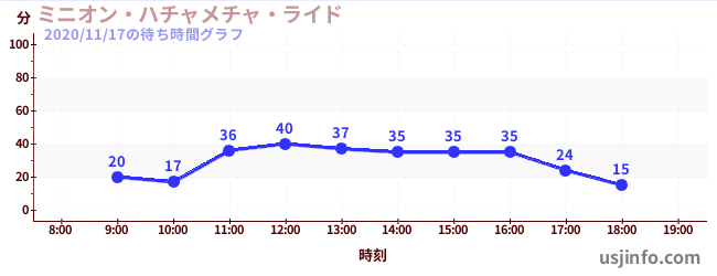 • ミニオン・ハチャメチャ・ライド$B$N(B2020年11月17日の待ち時間