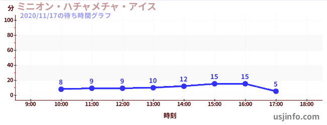 • ミニオン・ハチャメチャ・アイス$B$N(B2020年11月17日の待ち時間