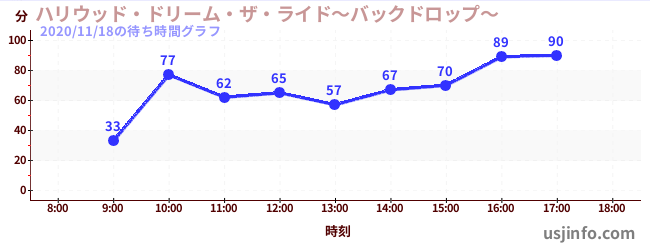 • ハリウッド・ドリーム・ザ・ライド〜バックドロップ〜$B$N(B2020年11月18日の待ち時間