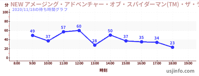 • NEW アメージング・アドベンチャー・オブ・スパイダーマン(TM)・ザ・ライド 4K3D$B$N(B2020年11月18日の待ち時間