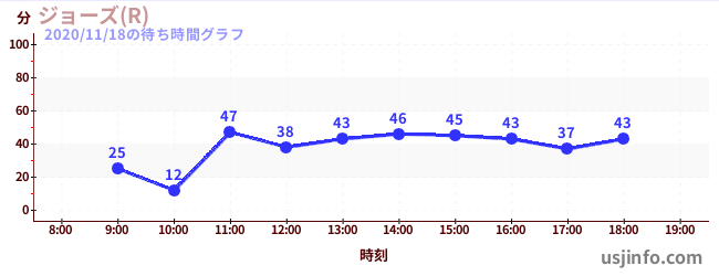 • ジョーズ(R)$B$N(B2020年11月18日の待ち時間