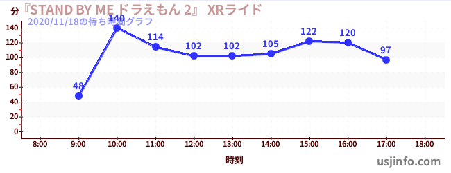 • 『STAND BY ME ドラえもん 2』 XRライド$B$N(B2020年11月18日の待ち時間