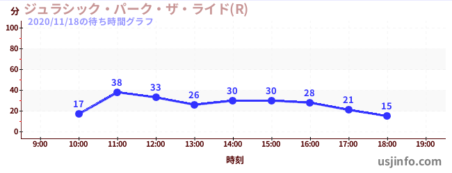 • ジュラシック・パーク・ザ・ライド(R)$B$N(B2020年11月18日の待ち時間