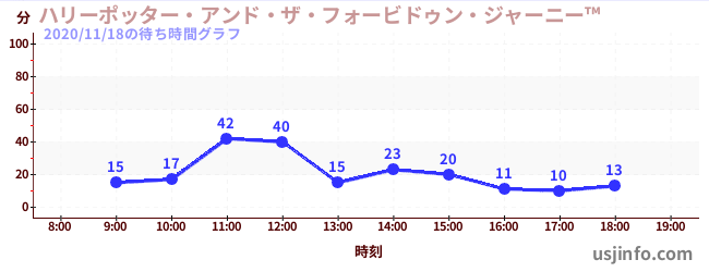 • ハリーポッター・アンド・ザ・フォービドゥン・ジャーニー™$B$N(B2020年11月18日の待ち時間