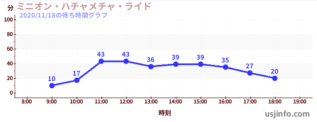• ミニオン・ハチャメチャ・ライド$B$N(B2020年11月18日の待ち時間