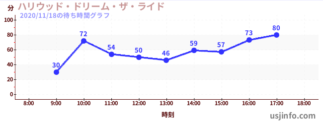 • ハリウッド・ドリーム・ザ・ライド$B$N(B2020年11月18日の待ち時間