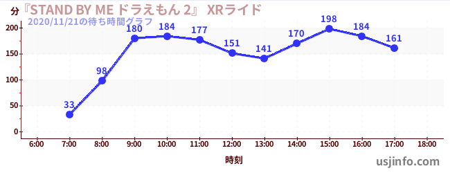 • 『STAND BY ME ドラえもん 2』 XRライド$B$N(B2020年11月21日の待ち時間