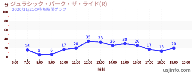 • ジュラシック・パーク・ザ・ライド(R)$B$N(B2020年11月21日の待ち時間