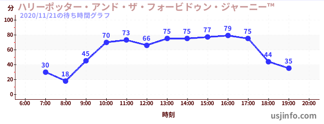 • ハリーポッター・アンド・ザ・フォービドゥン・ジャーニー™$B$N(B2020年11月21日の待ち時間