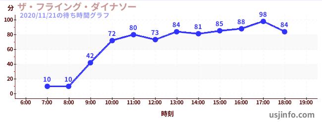 • ザ・フライング・ダイナソー$B$N(B2020年11月21日の待ち時間