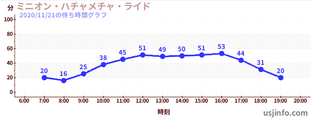 • ミニオン・ハチャメチャ・ライド$B$N(B2020年11月21日の待ち時間