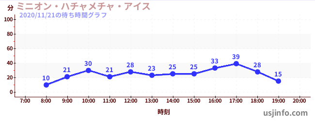 • ミニオン・ハチャメチャ・アイス$B$N(B2020年11月21日の待ち時間