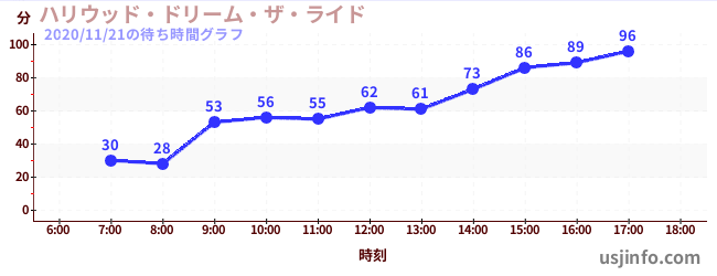• ハリウッド・ドリーム・ザ・ライド$B$N(B2020年11月21日の待ち時間