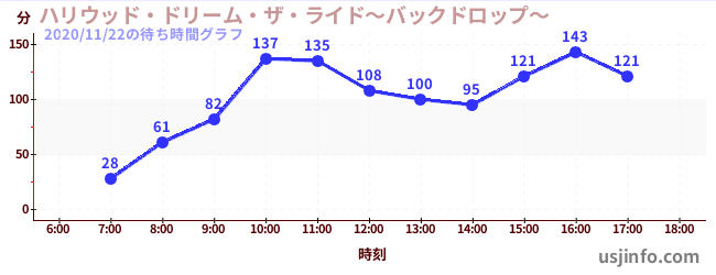 • ハリウッド・ドリーム・ザ・ライド〜バックドロップ〜$B$N(B2020年11月22日の待ち時間