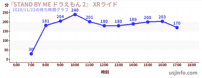 • 『STAND BY ME ドラえもん 2』 XRライド$B$N(B2020年11月22日の待ち時間