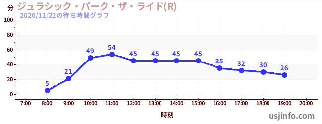 • ジュラシック・パーク・ザ・ライド(R)$B$N(B2020年11月22日の待ち時間