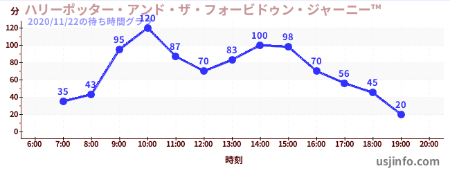 • ハリーポッター・アンド・ザ・フォービドゥン・ジャーニー™$B$N(B2020年11月22日の待ち時間