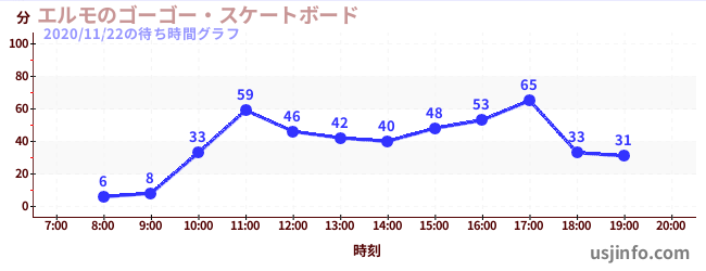 • エルモのゴーゴー・スケートボード$B$N(B2020年11月22日の待ち時間